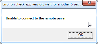Masalah: Saat membuka aplikasi muncul pesan "Error on check app version" atau "Login not success" dengan pesan "Unable to connect to the remote server". Ini artinya komputer tidak terhubung dengan internet.